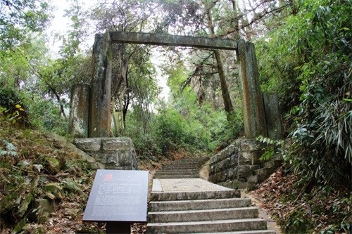 一天门 一天门是进入阁皂山福地的门户,始建于清光绪二年,由八棱柱、横额、雀替、方础组成,呈门字形,全为绿豆石建造,高7.17米,宽4.30米。石坊上部面南横书“一天门”三字,北面按唐高宗御赐封号,镌“三十三福地”五字。穿过石坊,拾级而上,浓荫夹道,仰望上空,但见天留一线,故又有“一线天”之称。