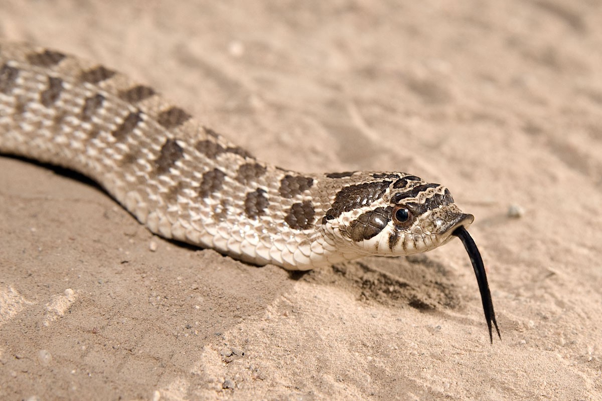猪鼻蛇的上吻部位是凸起的,这种结构能够帮助它们在松软的土里拱来拱去找吃的,看起来就像是猪用鼻子在拱土一样,因为这个特点才起名为猪鼻蛇。