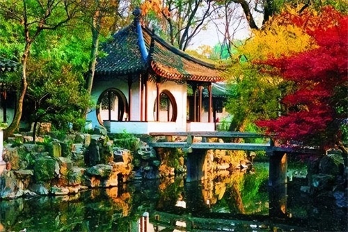 (12)苏州园林是中国苏州城内的园林建筑,占地面积不大但以意境见长,有限的空间内点缀安排,移步换景,变化无穷。