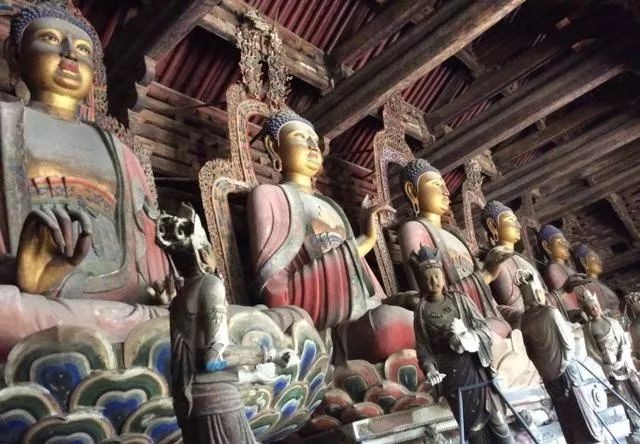 (11)大雄殿是古代遗存最大的佛殿,殿内有世界上最古老、最大的泥塑彩色佛像群。