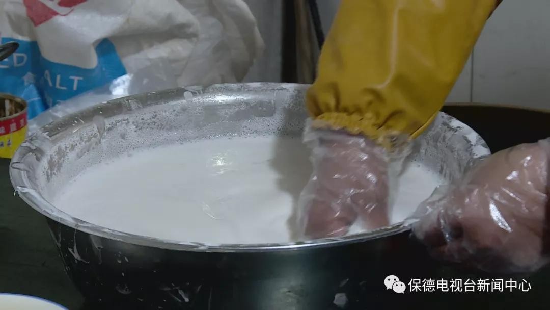 赵大姐:处理就是把水放进去搅拌,慢慢地灿开,就这样同一个方向一直搅拌。