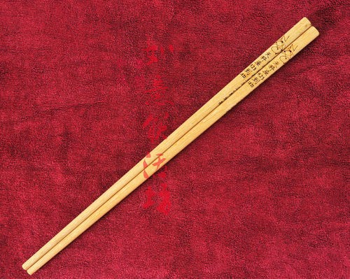 筷子,是中国通常所用的饮食工具,一般由木、竹、瓷、骨、金属、象牙、塑料等材料制作。筷子是世界上常用餐具之一,中华饮食文化的标志之一,被日本、朝鲜、越南等国广泛使用。筷子的使用深刻的影响着中国人的思维方式、语言表达、行为方式和宗教礼仪,积淀了丰富的传统文化精神。在古今诸多文学作品中,筷子也是常常为人所喜爱的著作题材。如唐杜甫《秋日阮隐居致韮三十束》诗:"束比青刍色,圆齐玉筯头。"南宋女诗人朱淑贞所著《咏箸》:“两个娘子小身材,捏着腰儿脚便开。若要尝中滋味好,除非伸出舌头来。”南宋陆游《秋思》曰:“老子斋居罢击鲜,木盘竹箸每随缘。”三国演义、红楼梦等古今文学巨作中亦有对于筷子的描述。在我国民间,也有关于筷子的诸多谜语,如:“兄弟俩双胞胎,齐上阵作用大,少一个都不成。”、“一双玉臂千人抚,酸甜苦辣她先尝,横批:为人民服务!”