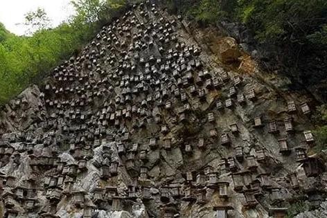 中国南方的许多地方悬崖峭壁上常常能看到一种令人惊叹的安葬方式悬棺葬,这些棺材通常悬挂在几十米甚至几百米高的悬崖上,其放置技术和方法至今仍然是一个未解之谜。