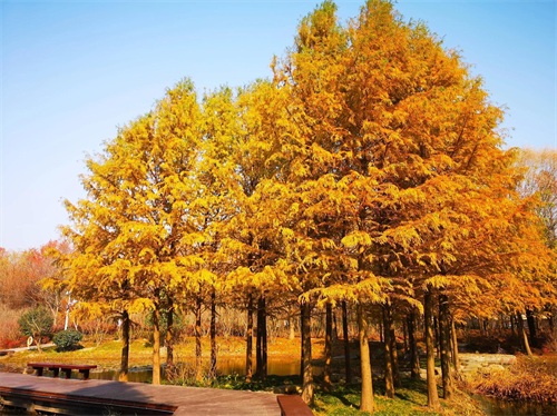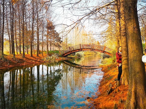 踏入下图的小桥,即入仙境,公园的秋冬季最经典红杉林,就在这里等你,待你步入就如同入画,沉醉其中,无法自拔,接下来会有多副图片,景太美,不忍文字打扰。