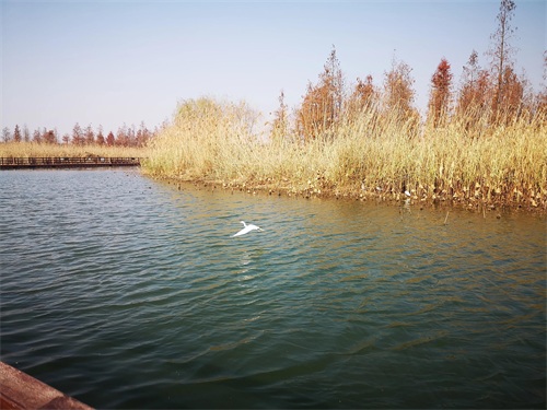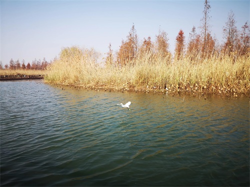 有幸偶见一群白鹭栖息在芦苇丛中,其中一只展翅飞翔,静静的湖水中有了主角,画面也从静态变成了动态。