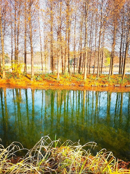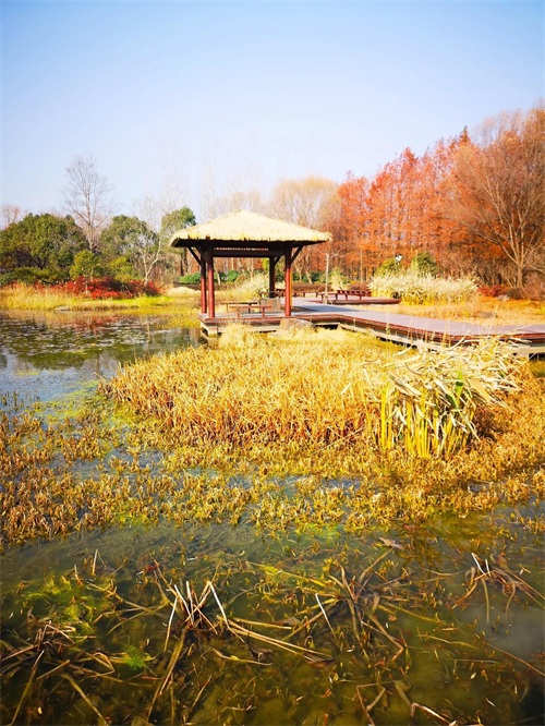 虎丘湿地公园处于虎丘山脚下北部的三角咀区域,原名“苏州杜鹃三角咀湿地公园”,我们听从导航的指引一路来到东南门,进入后,各有左右两个通道,左边风景更佳,途经几个网红打卡地,最后绕一个大圈后,从右侧返回起点。