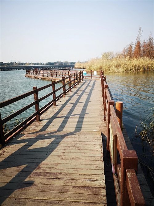 左侧进入水上木栈道,风夹裹挟着湖水的冷风吹来,很凉!两岸入眼处皆是风景,这时就忍不住拿起手机、相机拍摄,其实,后面风景更佳,此处预热一下即可。