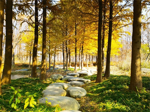 公园是“四角山水”空间布局,以绿色、生态、湿地为主题,通过生态岛、湖岸生态带和生态保护、生态游览、休闲娱乐三个功能区的建设,实现了“林、湖、田、园”的完美结合。