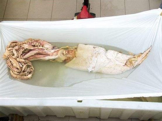 其实到目前而言,科学家能拍摄或捕捉到的活体大王乌贼都没有20多米长,例如2004年,日本的科学家根据抹香鲸的捕食踪迹,利用诱饵在900米的深海处拍摄到了世界上第一张活体大王乌贼的照片,在挣扎了4小时后乌贼留下了一条5米长的触手,所以推测全长大概只有8米。