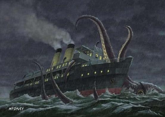 如果你有看过《加勒比海盗》的话,那么你应该知道章鱼船长有一只非常恐怖的深海宠物,“北海巨妖”克拉肯。这是一只潜伏在挪威海域的魔物,在神话描述中足足有150米长,有着庞大的躯体和令人恐怖的触须,外形酷似乌贼或者章鱼,触须只需要轻轻一摔就能把一艘海盗船毁灭,将其拖入海底,叫他海洋霸主也不为过。当然这只是北欧神话里面的怪物,现实生活中是不可能存在的,不过在我们现实生活中,想想如果把北海巨妖的提醒缩小呢?这样的怪物会不会就隐藏于地球的深海里面,只是我们还没发现呢?那就是按照地球生物的尺寸来说,与北海巨妖最相似的动物恐怕就是大王乌贼和巨枪乌贼了。