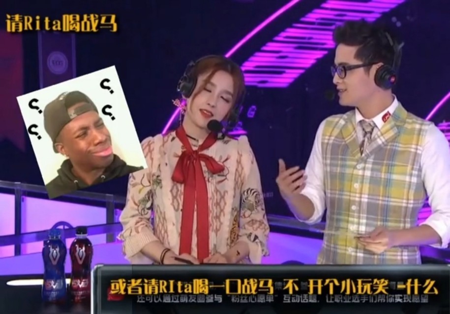 在一次记得搭档Rita两人解说比赛,记得也玩起了这个梗,搞得Rita一阵白眼。