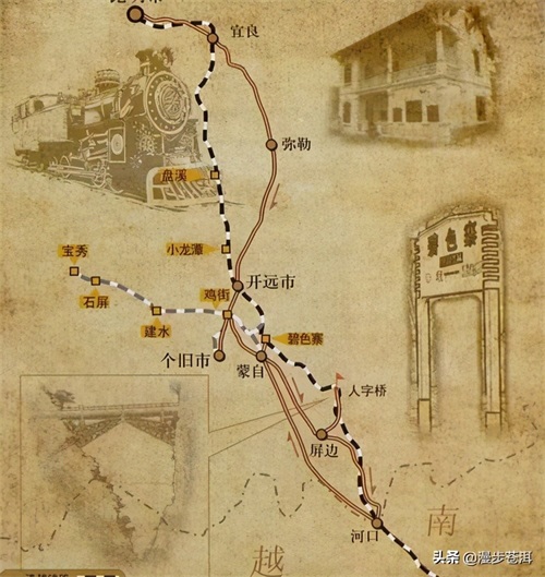 沿途城市 昆明、宜良、弥勒、开远、河口、海防