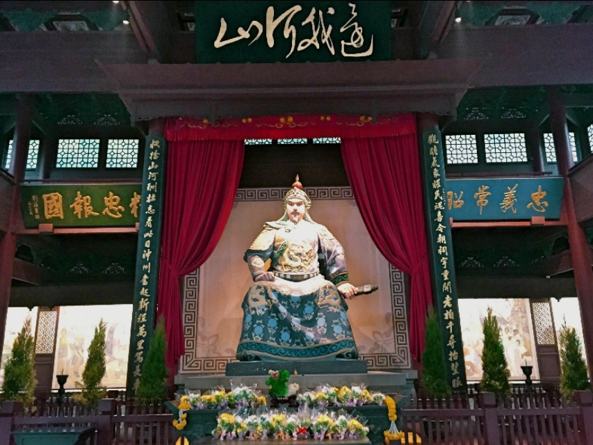岳飞(1103—1142年),字鹏举,相州汤阴(今河南省汤阴县)人。南宋时期抗金名将。从二十岁起,曾先后四次从军。绍兴十年(1140年),岳飞挥师北伐,先后收复郑州、洛阳等地,在郾城、颍昌大败金军,进军朱仙镇。宋高宗赵构和宰相秦桧却一意求和,以十二道“金字牌”催令班师。在宋金议和过程中,岳飞遭受秦桧、张俊等人诬陷入狱。1142年1月,以"莫须有"的罪名遇害。岳飞遇害后,狱卒隗顺冒着生命危险,背负岳飞遗体,草草地葬于九曲丛祠旁。宋孝宗时,平反昭雪,改葬于西湖畔栖霞岭下,追谥武穆,后又追谥忠武,封鄂王。在宋、元、明三朝,备受尊崇。现存建筑于清康熙五十四年(1715)重建。民国七年(1918年)大修。 但在“文革”期间,遭到了严重的破坏。1979年,中央拨专款修复了这一爱国主义教育基地, 岳王庙更加庄严肃穆。