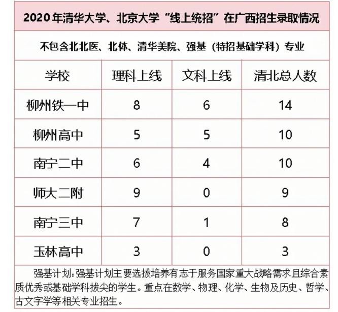 但是从这些数据,也反映出一个问题,就是玉林高中最拔尖的学生少,近7年只出了一个理科状元,同时清北人数与其强大的参加考试人数相比,占比非常小,而且这些清北里面,有很多可能是北大医学院等,真实统招上线人数比较少,其中以2020年为例:
