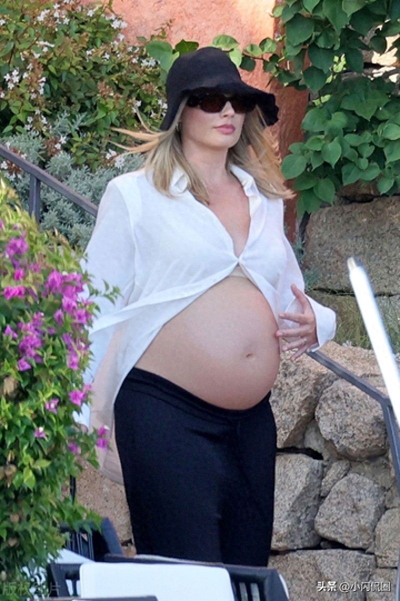 芭比怀孕了!玛格特罗比 挺大孕肚黑白穿搭 性感现身撒丁岛海边度假