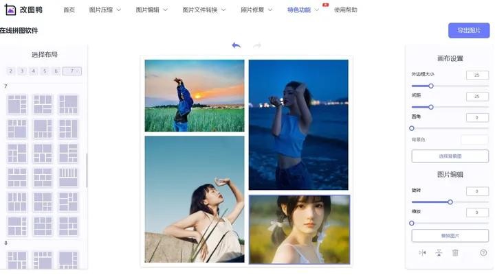 一个在线的多功能修图网站,也有手机端和电脑端应用。它可用于抠图、编辑图片、拼图等,大部分功能都可以免费使用,我们可以在特色功能中看到【模板拼图】功能。