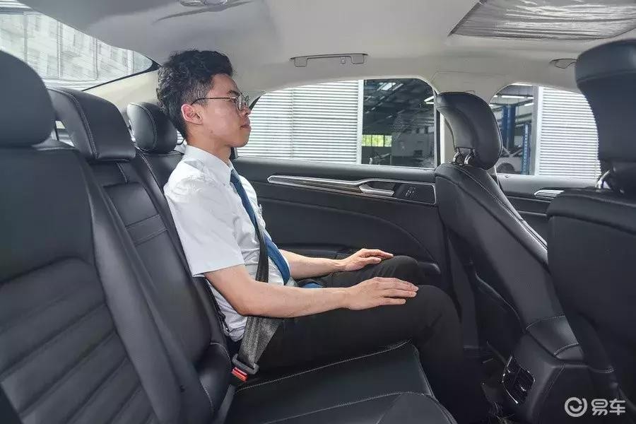 蒙迪欧的乘坐空间不算突出,就是一般中级车的水平。前排还不错,延展性强,后排空间看起来比其他中级车小一点点,宽度够,是长度不够,翘不了二郎腿。