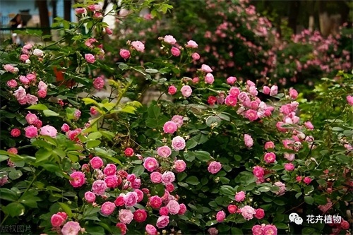 蔷薇科三姐妹之一,花期一般在初夏,一般花朵比月季小且繁多,因为是攀援灌木,所以很容易营造花墙景观。