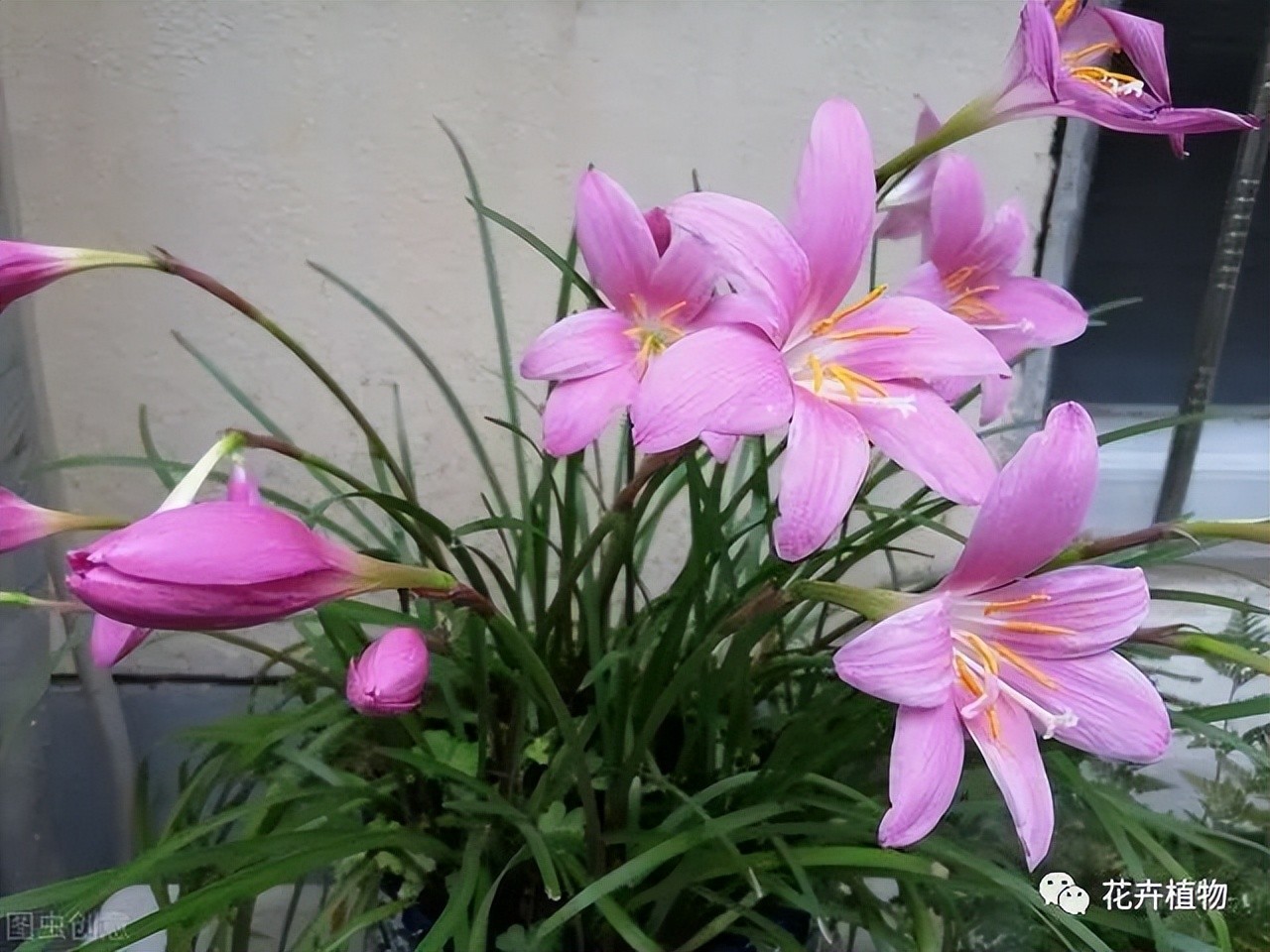 韭莲粉红色,甚鲜艳,尤以高温多湿的梅雨季节最盛,花期早自5月下旬初开断续至11月上旬气温速降才止。