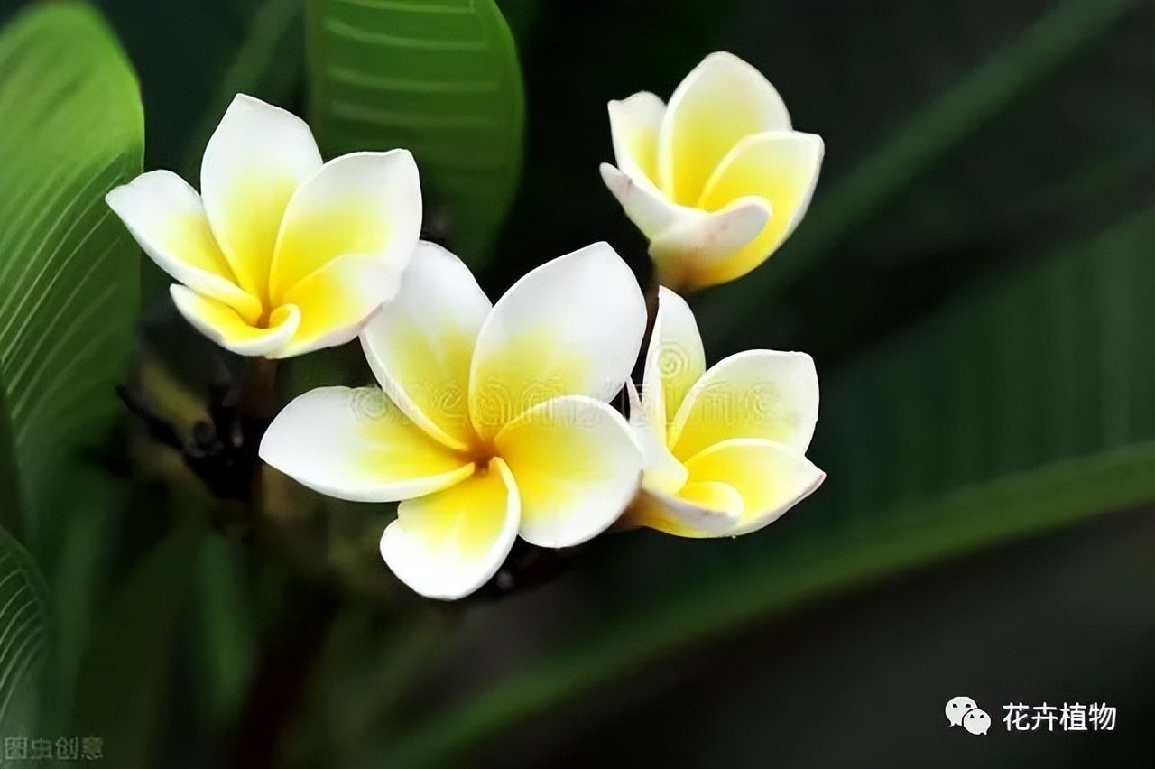 鸡蛋花,花如其名,花朵外白内黄,就像是鸡蛋白包裹着蛋黄一样,十分别致。