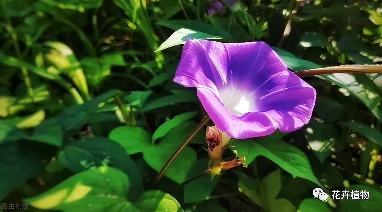 牵牛花还有个俗名叫勤娘子,它在清晨太阳即将出来的时候,就开放出一朵朵喇叭似的花来。