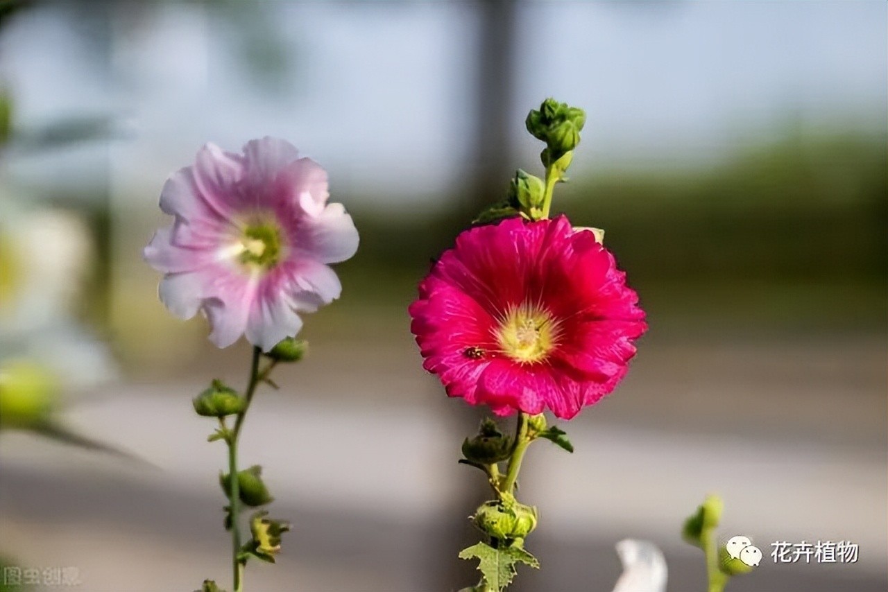 蜀葵花形与木槿真的很像,花期大致都为6-9月份但蜀葵是草本宿根植物,而木槿是木本植物。