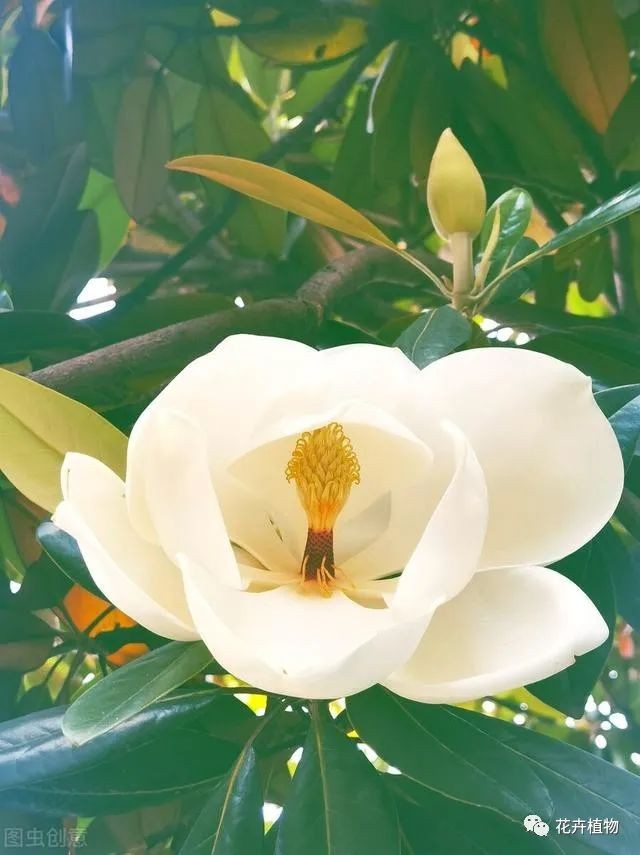 又名广玉兰,花开初夏,树大冠浓,花大洁白,形如长在树上的荷花,给人清新脱俗的感觉。