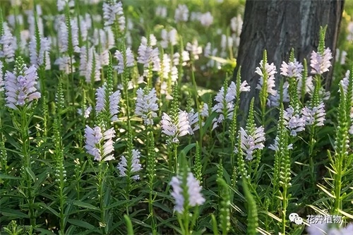 穗状花序顶生,有花,花色粉色、白色、淡紫红,因其花朵排列在花序上酷似芝麻的花,惟密度稠一些,故名芝麻花。8-10月开花。