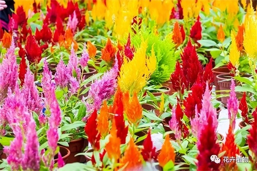 鸡冠花花朵拥有丰富多样的花型且鲜艳绚丽的色彩,不同品种的鸡冠花除了鸡冠模样,还可以呈现出火炬状、绣球状、羽毛状或扇面状等花型,颜色更是有鲜红、橙黄、紫色、白色等等,株高还可分为高、中、矮。