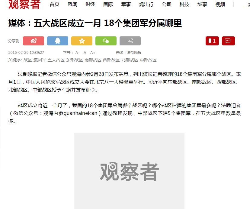 观察者,媒体:五大战区成立一月 18个集团军分属哪里