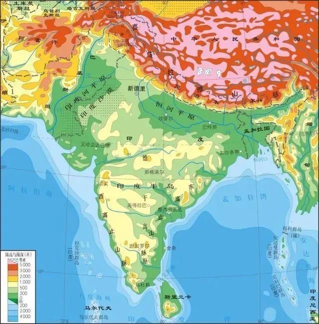 低矮平缓的土地和这种地形造成的便利的交通;热带季风气候带来高温多雨的气候条件以及河流冲积形成的肥沃土地使得印度地区物产非常丰富。黄麻产量居世界第一,稻米和茶叶、棉花产量居世界第二。