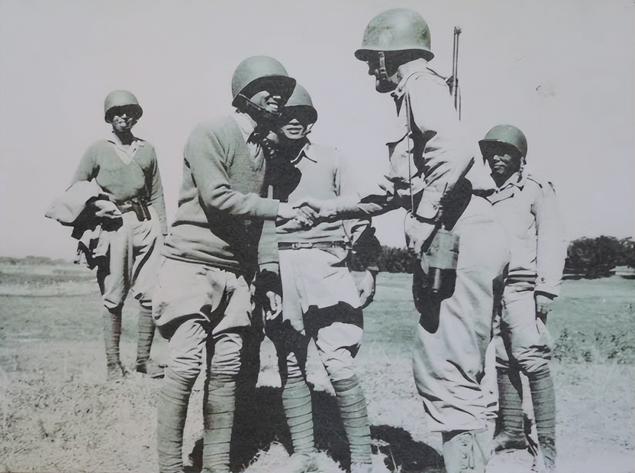 图为新编第一军军长孙立人将军与新编第38师师长李鸿等人合影。孙立人将军生于1900年,入缅甸作战时任第38师师长,后升任新一军军长。孙立人将军在缅甸作战期间战功显赫,共击毙日军3万3千余人,有“丛林之狐”的美誉。
