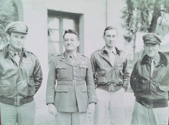 照片上的盟军将领,从左至右分别是:文森特上校、陈纳德将军、霍洛韦中校、斯特里克兰上校。