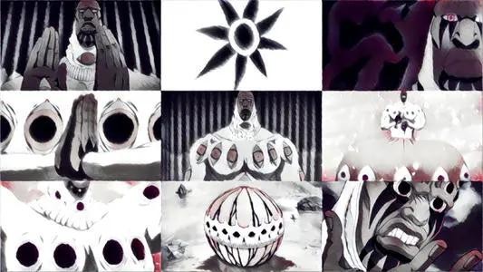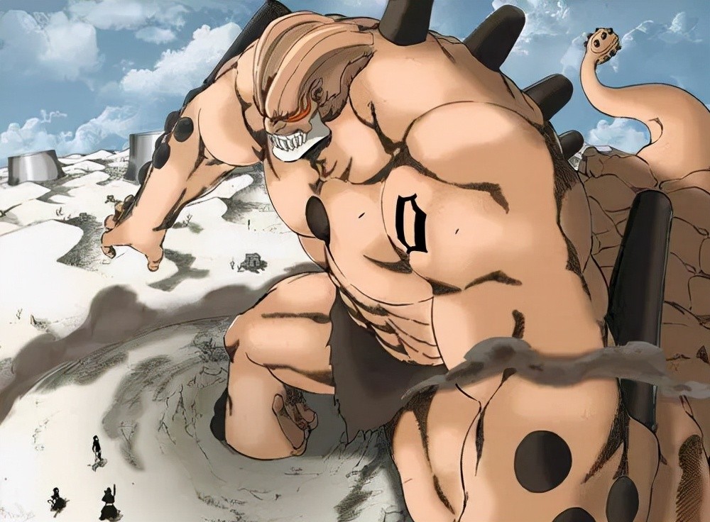 归刃后身躯变得更加巨大,皮糙肉厚,同时生出许多小脚小腿。以高重量的锤击粉碎对手,最终被剑八和白哉击败。(个人觉得他很弱鸡)
