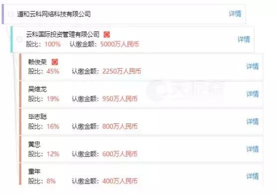 据了解,向仕洪参离开云联惠董事一职后,参照云联惠模式,联合5为好友出资创立道和云科,运营相对低调,相关消息甚少。(本文转自防骗大数据:FPData)