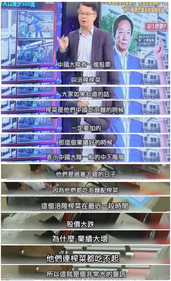 2019年,台湾省一个著名的财经专家在电视节目中扔出一颗重磅炸弹:大陆人根本吃不起榨菜......