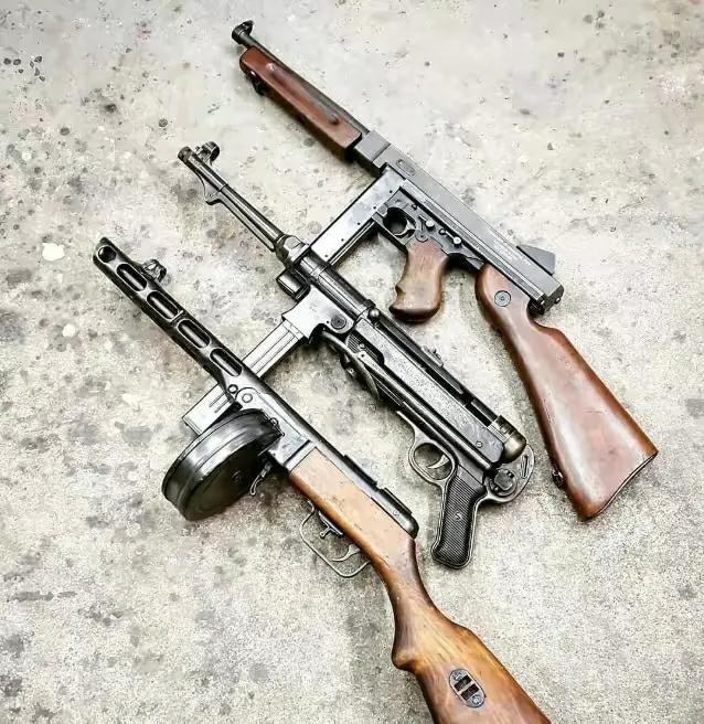 美国和苏联在战争后期都意识到了 MP40的先进设计,分别推出了m3和波波斯冲锋枪,从图片上我们都能直观地感受到它们和MP40的相似之处,前方下置的弹匣,后面可操作性很强的小握把,还有就是可折叠的枪托,之前八九百发的高射速也没有了,取而代之是更实用的四五百发的实战射速。