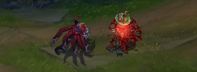 LOL新猩红之月系列皮肤特效图:泰隆跳灯笼回城亮了!
