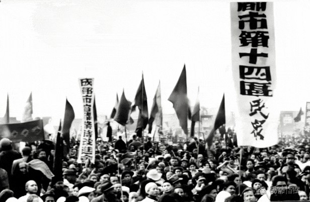 ▲成都各界群众团体参加成都解放庆祝大会(本影像由AI根据历史照片生成)。图片来源:成都市档案馆