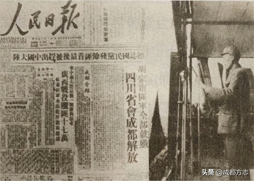 ▲《人民日报》刊登人民解放军解放成都等地的消息。图片来源:成都日报锦观