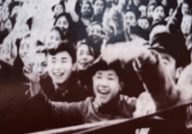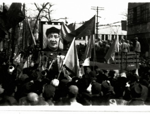 我们在上午10点半到达,那里已经挤满了人群,几乎所有街道的商铺前面都悬挂了共产党的红旗,店铺前的灯笼通常是白纸上写的字,现在都被金黄色的五星覆盖。沿街还有很多红色的横幅。卡车队伍开过了街道,学生们和市民们挥手大声欢呼,他们每个人手里都拿着小纸旗,上面写着欢迎的口号,他们唱着,喊着,激动喜悦。许多战败的军人(指起义军人)都戴上了有红星的帽子,像其他人一样加入欢迎队伍。