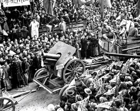 今天早上,两个营的共产党军队乘坐卡车来到了城市,他们确实来了!在省政府大楼设立了指挥部。我碰巧路过,看到他们布防,急切地巡看四周。没过多久,他们中的一些人走到街上,开始与民众交谈。民众倾诉他们对旧政府的不满。这些共产党人告诉民众,这里已经发生变化,这对他们意味着什么。不一会儿,一位领唱者同人群高唱“起来”“起来”。他是一个专业的指挥者,人们热情高涨,围着他唱歌,而且唱得很好。他还独唱了一首国际歌,唱得十分精彩。
