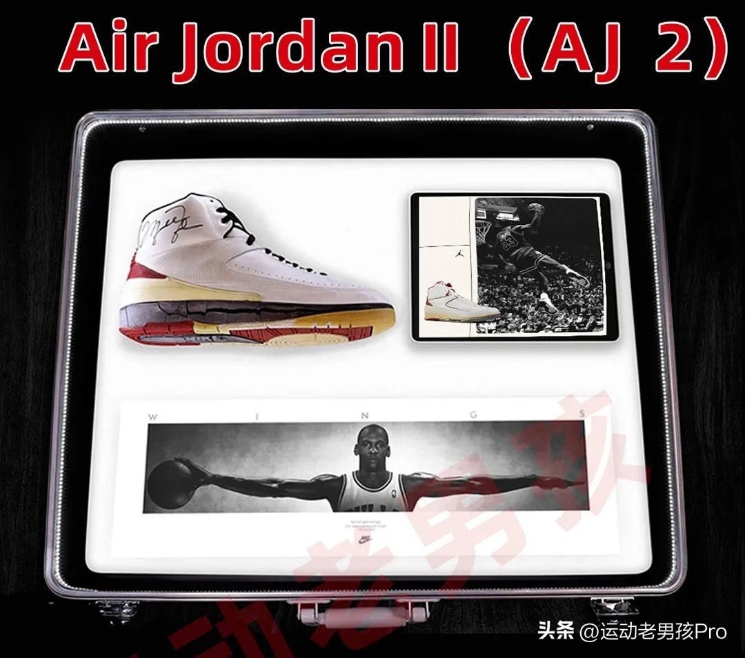 经典事迹:这是 AJ系列中最后一次使用飞翼的logo;第一次在鞋身上取消了Nike的swoosh;AJ2是由意大利制鞋大师打造的一双压花革球鞋。