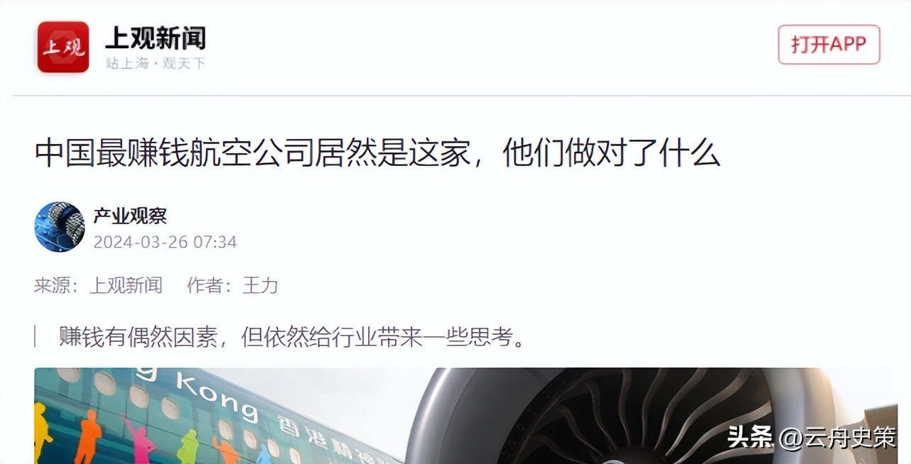 上观新闻 2024-03-26 《中国最赚钱航空公司居然是这家,他们做对了什么》