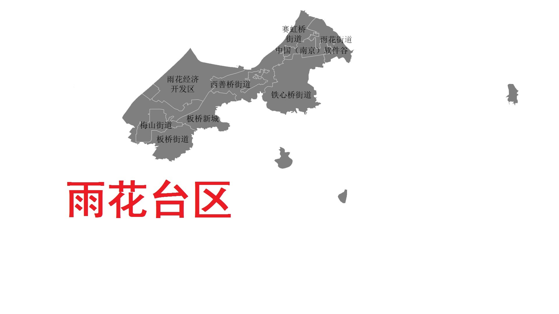 雨花台区,区政府驻雨花街道。位于南京市域中部(主城区西南部),区境东、南连江宁区,西与浦口区隔江相望,西北接秦淮区,东北临建邺区。