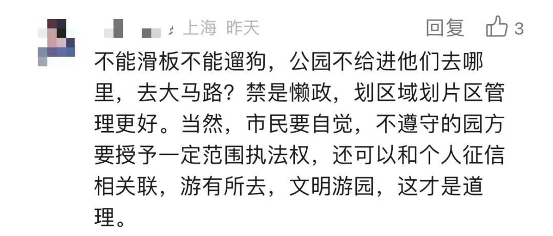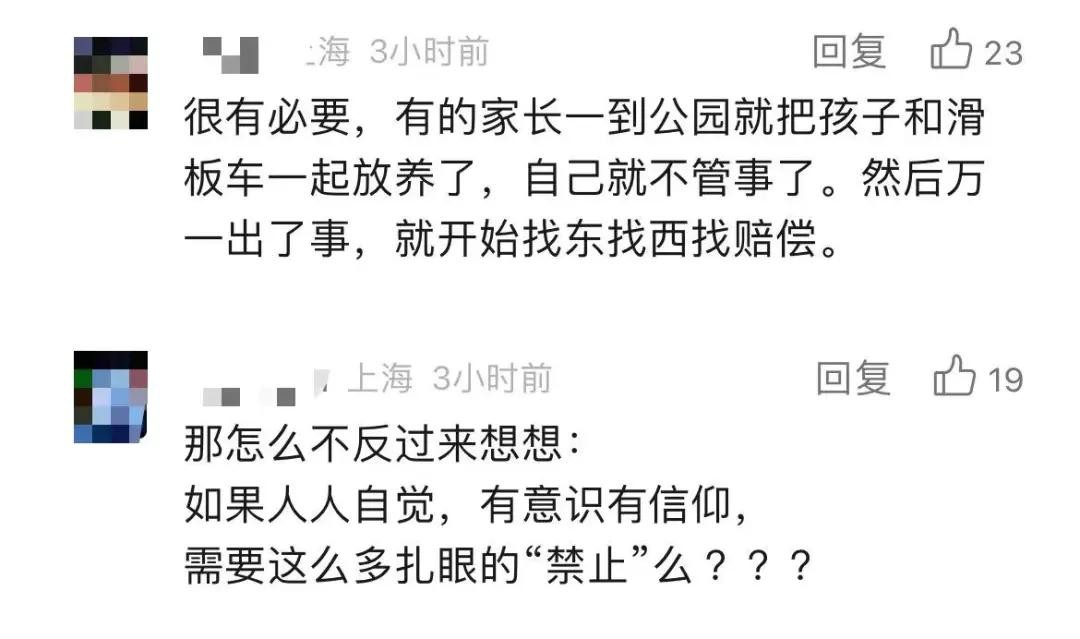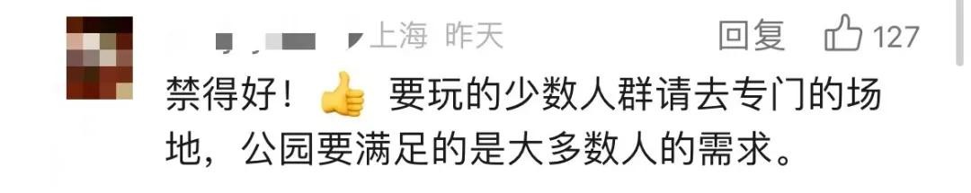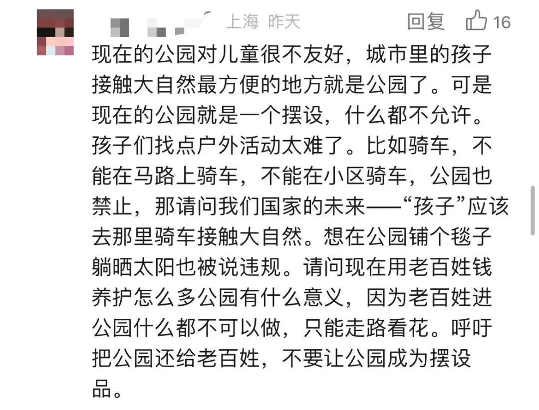 “可以理解不能在所有地方让小朋友玩车,但是我觉得公园里要有可以让小孩子骑车的区域,现在一刀切我觉得不合适。”