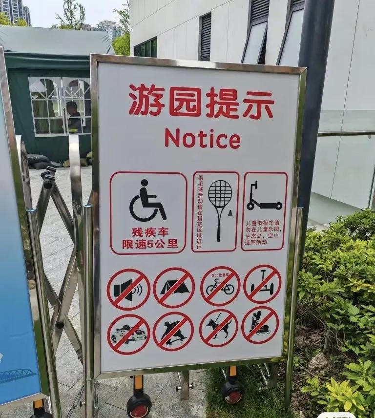 “温馨提示”是根据《上海市文明游园守则》制作的,且在十年前就已经开始实行。