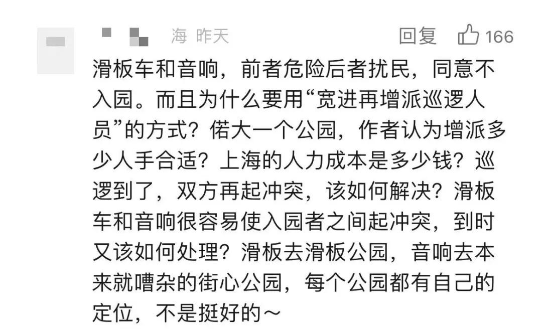 以淮海中路的襄阳公园为例,园方负责人马啸远告诉记者,公园不允许携带宠物、搭帐篷等行为,但儿童滑板车可以入园,“人流量大的时候,我们会提醒游客,滑的时候要小心,减慢滑速。”