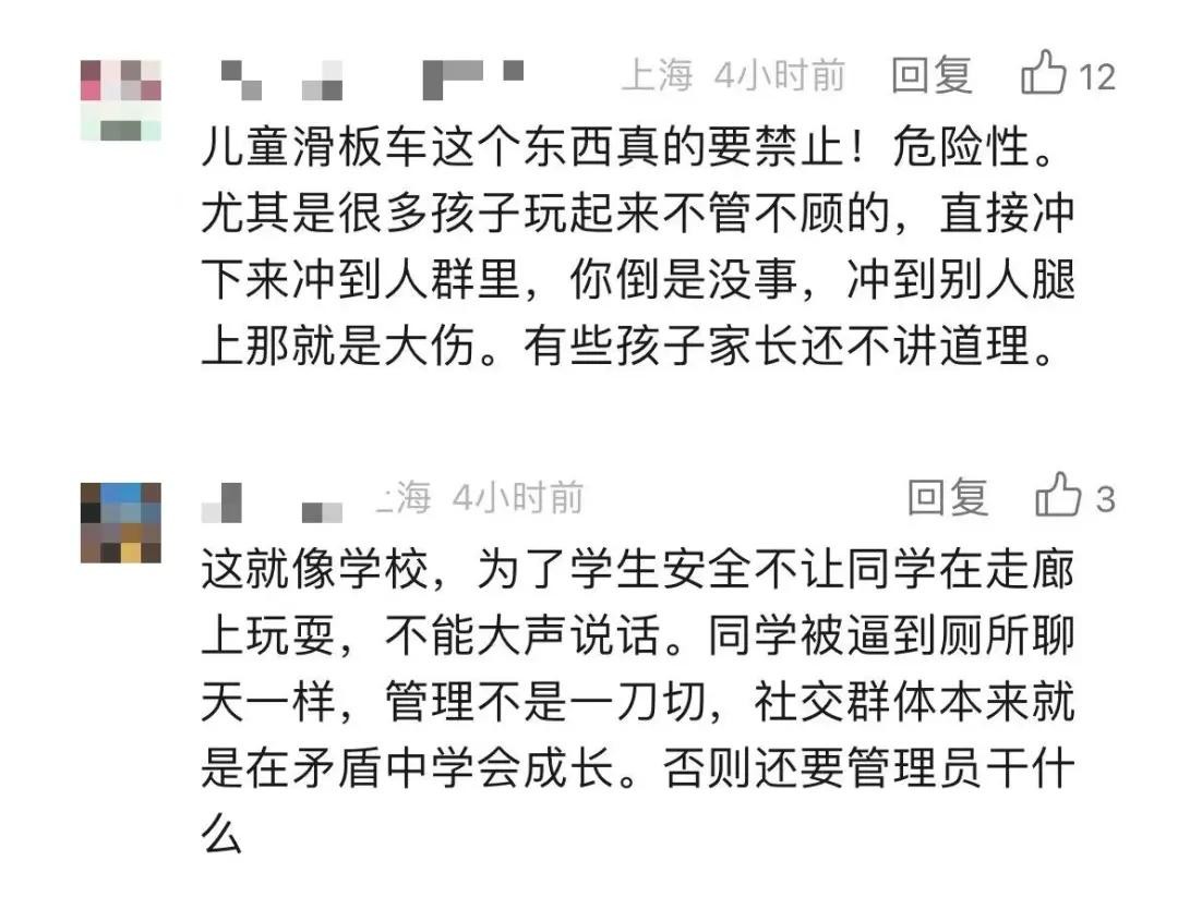 也有家长反映:“进去保安就说了,不准小孩在里面骑平衡车。我就和他承诺我车提在手里,不骑,他就让我进了。”