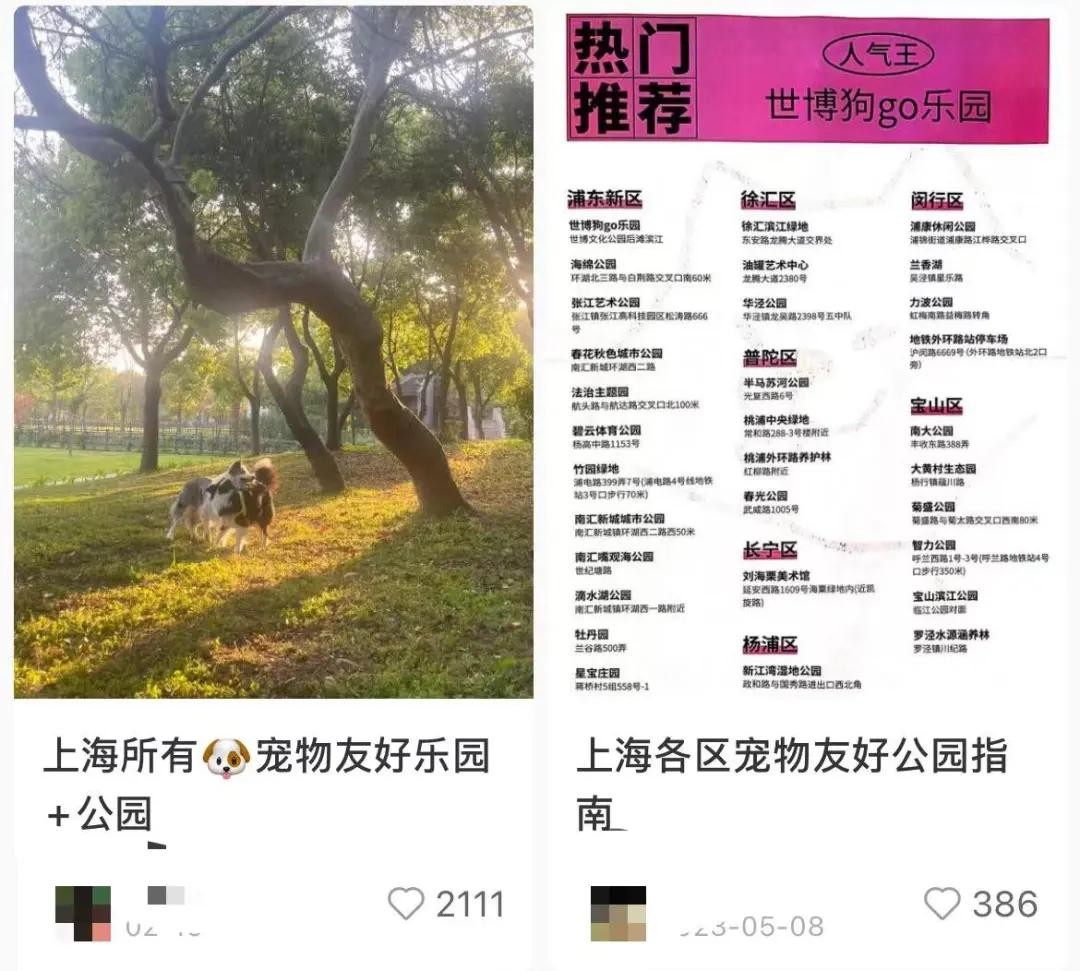 有网友还做了宠物友好公园合集名单,这张名单的讨论流量一直居高不下,名单上的公园还在不断补充、更新。